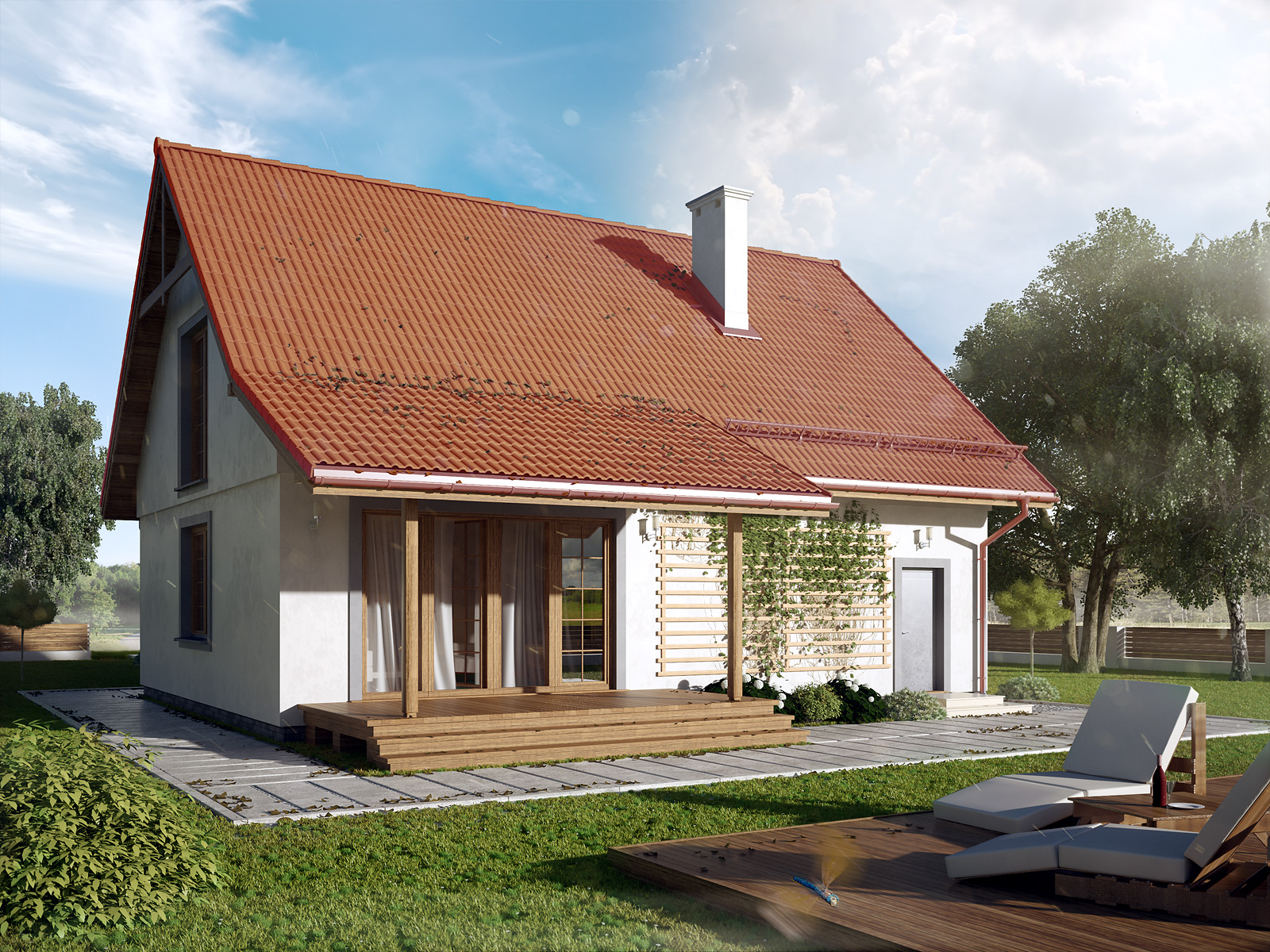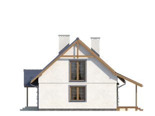 Agatka 2 to tradycyjny dom zaprojektowany z myślą o 4-osobowej rodzinie. Jest to dom energooszczędny charakteryzujący się zwartą bryłą, w której mieści się jednostanowiskowy garaż i kotłownia usytuowana tuż za nim. Agatka 2 to dom prosty i funkcjonalny, co z pewnością umożliwi wybudowanie go w ramach rozsądnych środków. W bryle budynku nie zastosowano elementów, które mogłyby podwyższać koszty budowy, typu: wykusz, lukarna, balkony, rozbudowane tarasy. W założeniu projekt Agatka 2 ma być prosty i tani w realizacji. Na parterze w części dziennej znajdują się: salon z jadalnią, kuchnia, spiżarnia oraz wc; w części gospodarczej: garaż oraz kotłownia. Na poddaszu zaprojektowano trzy sypialnie, w tym jedną z garderobą oraz łazienkę.