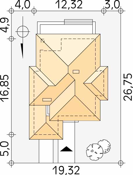 Dwukondygnacyjny budynek mieszkalny, przeznaczony dla 5 – osobowej rodziny. Budynek o ciekawej, eleganckiej architekturze. Przestronne wnętrze, z wyraźnym podziałem na część dzienną i nocną. Na parterze zaprojektowano dodatkowy pokój, na piętrze pojawia się wolna przestrzeń, którą można przerobić na sypialnię.