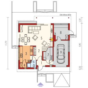 Wymiary budynku 11.70 m × 11.70 m