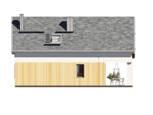 Alikante 2 to projekt domu z użytkowym poddaszem o powierzchni 88 m2. Projekt cechuje zwarta bryła przykryta dwuspadowym dachem. W projekcie zaprojektowano otwartą część dzienną. Tworzą ją salon z kominkiem, niewielka jadalnia oraz kuchnia. Niewątpliwa zaletą części dziennej są duże przeszklenia, które otwierają wnętrze na ogród i wprowadzają naturalne światło. Na poddaszu zaprojektowano trzy sypialnie oraz rodzinną łazienkę. W łazience wygospodarowano miejsce zarówno na wannę, jak i prysznic. Na parterze pojawił się dodatkowy pokój, który idealnie sprawdzi się jako sypialnia dla gości lub gabinet do pracy i nauki.