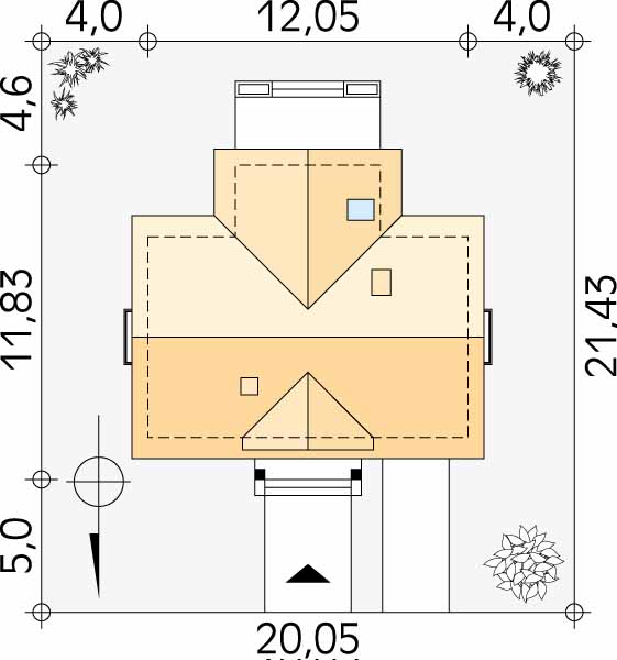 Wymiary budynku 12.05 m × 11.83 m