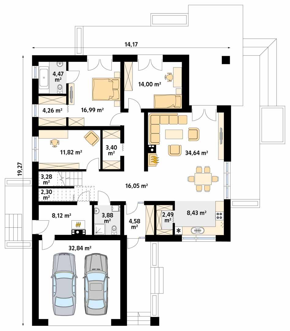 | salon/jadalnia | 34.64 m2 |