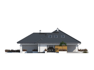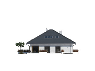 Ariel 7 to propozycja domu z użytkowym poddaszem przeznaczonego dla 6-7 osobowej rodziny. Na parterze zaprojektowano obszerną część dzienną na którą składają się salon z jadalnią oraz kuchnia ze spiżarnią. Na przestrzeni parteru przewidziano również dodatkową sypialnię z dostępem do łazienki i garderoby, gabinet oraz pokój dla gości. Program parteru uzupełnia kotłownia z oddzielnym wejściem oraz dwustanowiskowy garaż. Na poddaszu zaprojektowano 3 sypialnie, łazienkę oraz pralnię. Największa z sypialni posiada własną łazienkę, zaś dwie pozostałe zostały wyposażone w garderoby. Atutem projektu jest częściowo zadaszony taras okalający budynek z dwóch stron.