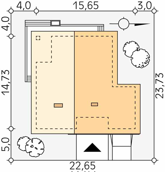 Jednorodzinny dom parterowy z garażem, przeznaczony dla 4-osobowej rodziny. Funkcjonalny układ pomieszczeń z wyraźnym podziałem na część dzienną i nocną. W prostej bryle budynku zaprojektowano przestronny, otwarty salon z kuchnią i jadalnią oraz częściowo zadaszony taras. W części nocnej przewidziano trzy przestronne sypialnie.