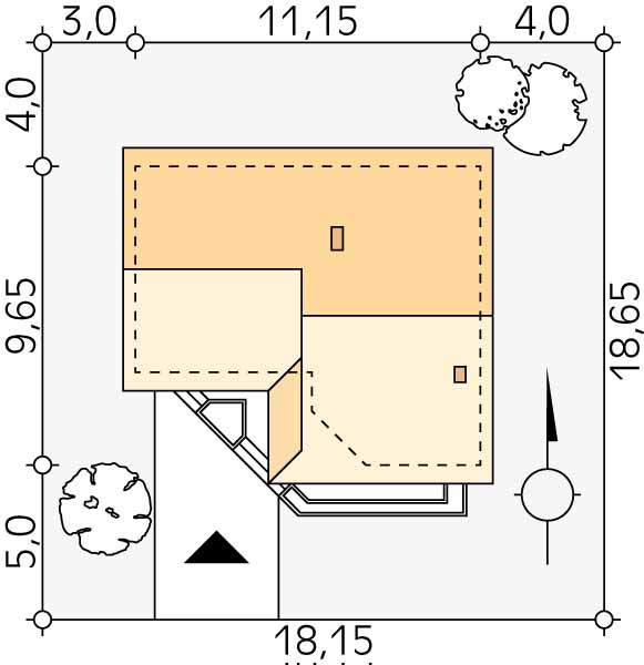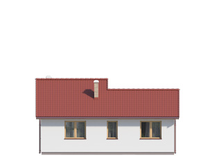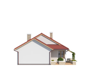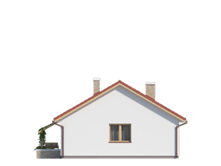 Mały jednorodzinny dom parterowy, niepodpiwniczony. Pomimo niewielkiego metrażu zawiera w sobie optymalny program pomieszczeń dla 2-3 osobowej rodziny. Usytuowanie salonu od strony wejścia oraz narożne przeszklenie daje uczucie otwartości domu. Przed wejściem zaprojektowano częściowo zadaszony taras.