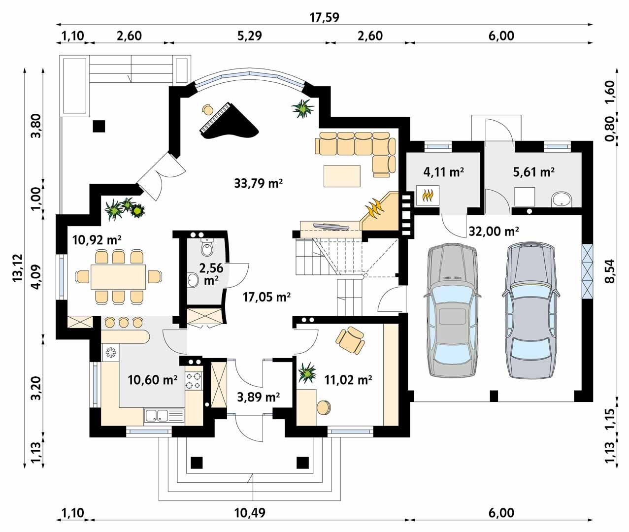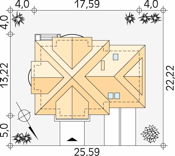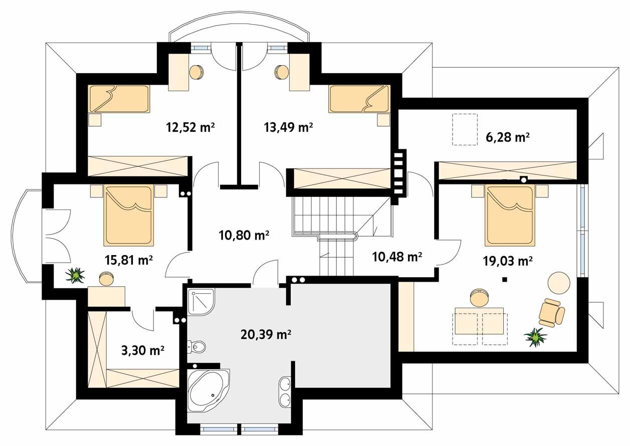 Dom o klasycznych proporcjach przeznaczony dla 4 – 5-osobowej rodziny. Przestronny parter z dodatkowym gabinetem. Na osi wejścia zaprojektowano w pokoju dziennym duże, przeszklone okno z widokiem na ogród. Reprezentacyjny dom o rozbudowanej funkcji ucieszy wybrednego inwestora.