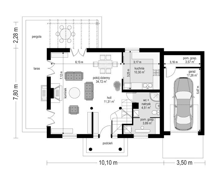 | Ilość kondygnacji: | parterowy z poddaszem użytkowym |