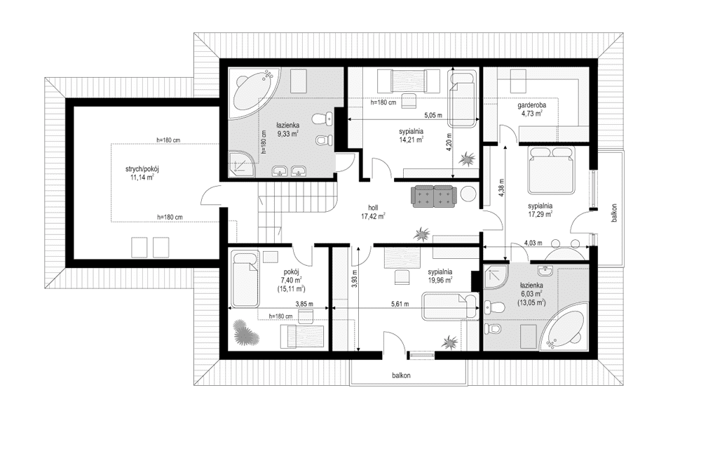 | Ilość kondygnacji: | parterowy z poddaszem użytkowym |
