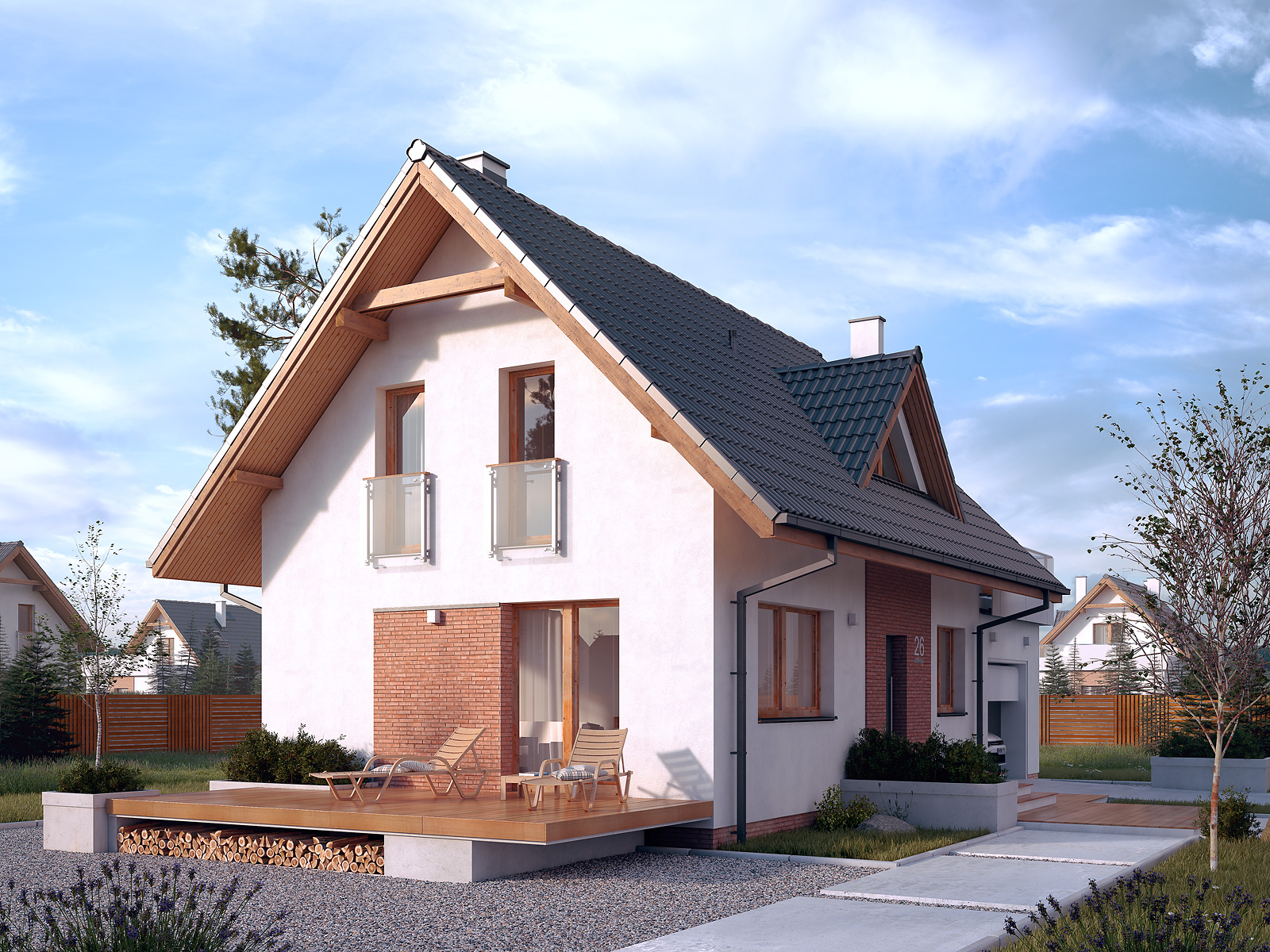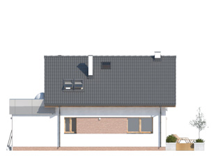 Bez 2 to projekt niewielkiego domu przeznaczonego dla 4 osobowej rodziny. Przestrzeń mieszkalna podzielona została na część dzienną zlokalizowaną na parterze oraz strefę nocną, która znalazła się na poddaszu. Na program użytkowy parteru składają się: salon z jadalnią, kuchnia z wydzielonym miejscem na spiżarnię, łazienka, wiatrołap, hol oraz kotłownia. W projekcie znalazły się dwa rodzaje ogrzewania: gazowe i na paliwo stałe, do wyboru przez właściciela domu. W projekcie pojawił się również jednostanowiskowy garaż. Na poddaszu znalazły się trzy sypialnie w tym jedna z własną garderobą oraz wspólna łazienka. Projekt domu Bez 2 cechuje prosta bryła przykryta dwuspadowym dachem. Takie połączenie zapewnia niższe koszty budowy, jak również niewielkie koszty późniejszego użytkowania.