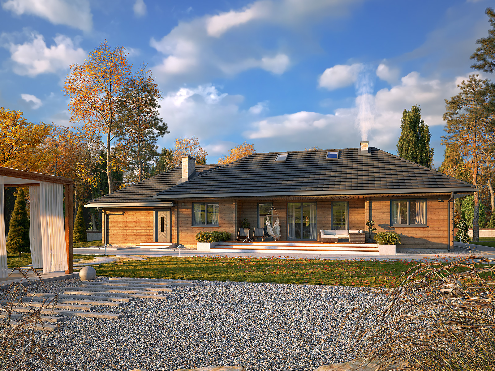 Borówka 7 to dom parterowy rozplanowany na symetrycznym rzucie, do którego dodano garaż na dwa samochody. Konstrukcja została wykonana z drewna, a elewacja z bali. Dach wielospadowy został przykryty ciemną dachówką ceramiczną. Na parterze znajdują się: wiatrołap, garderoba, wc, łazienka, 3 sypialnie, pokój dzienny z jadalnią, kuchnia, garaż z kotłownią.