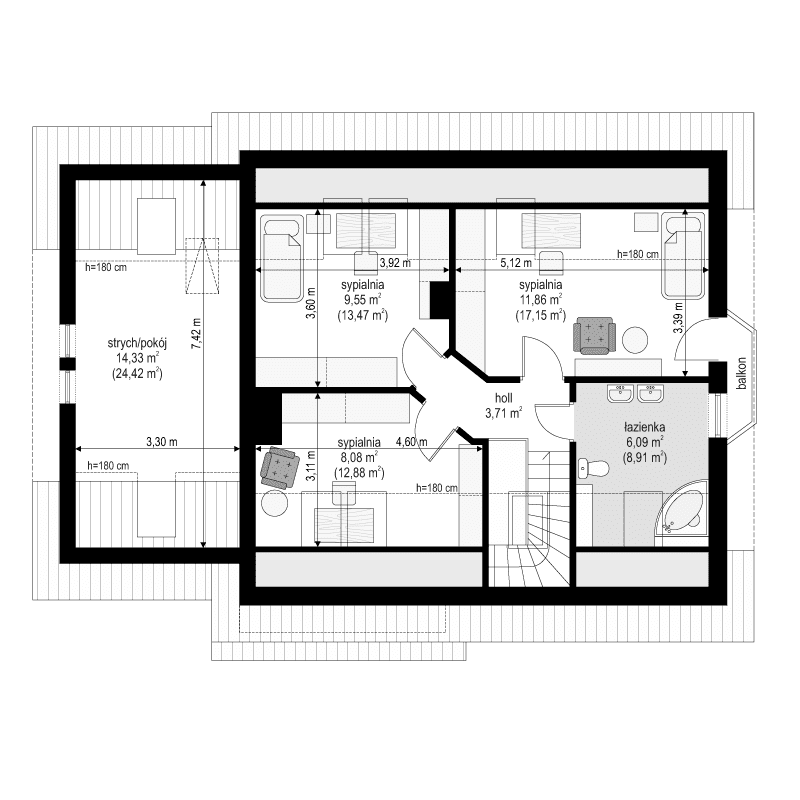 | Ilość kondygnacji: | parterowy z poddaszem użytkowym |