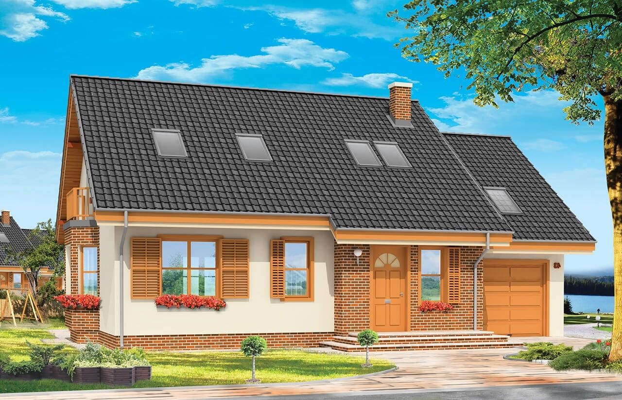 Projekt domu Bryza to sympatyczny, nieduży dom jednorodzinny, dla 4- 5-osobowej rodziny. Domek nadaje się nawet na niewielką działkę. Projekt wyróżnia prosta, łatwa w budowie bryła oraz dwuspadowy dach. Dom można łączyć w budynek bliźniaczy, stykający się garażami. Na powierzchni poniżej 140 m² udało się zaprojektować cztery pokoje na poddaszu i salon oraz dodatkowy pokój na parterze. Dom Bryza posiada dwa pomieszczenia gospodarcze, dostępne z garażu. Pracownia posiada również projekt domu Bryza w odbiciu lustrzanym. Zapraszamy do zapoznania się z pełną ofertą pracowni MG Projekt: projekt domu Bryza 2, projekt domu Bryza 3, projekt domu Bryza 4, projekt domu Bryza 5 (NF 40), projekt domu Bryza 6 (MDM) .
