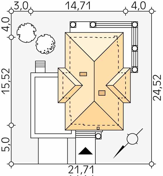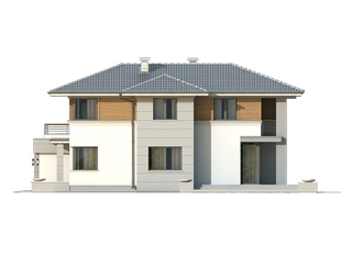 Budynek mieszkalny jednorodzinny, wolnostojący, piętrowy, częściowo podpiwniczony. W piwnicy znajdują sie: kotłownia, pralnia oraz pom. gospodarcze. Na parterze zaprojektowano otwartą przestrzeń dzienną, dodatkowy pokój oraz część gospodarczą. Na piętrze zaprojektowano trzy sypialnie, łazienkę oraz garderobę z wyjściem na taras.