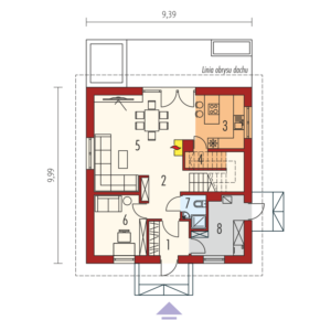 Wymiary budynku 9.39 m × 9.99 m