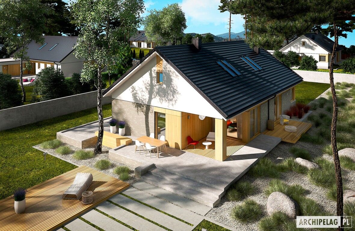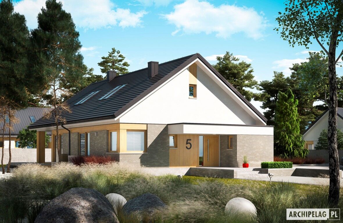 – Daniel G1 (30 stopni) – z dachem o kącie nachylenia 30°, tradycyjna więźba dachowa, garaż jednostanowiskowy