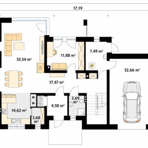 Wymiary budynku 11.79 m × 17.19 m