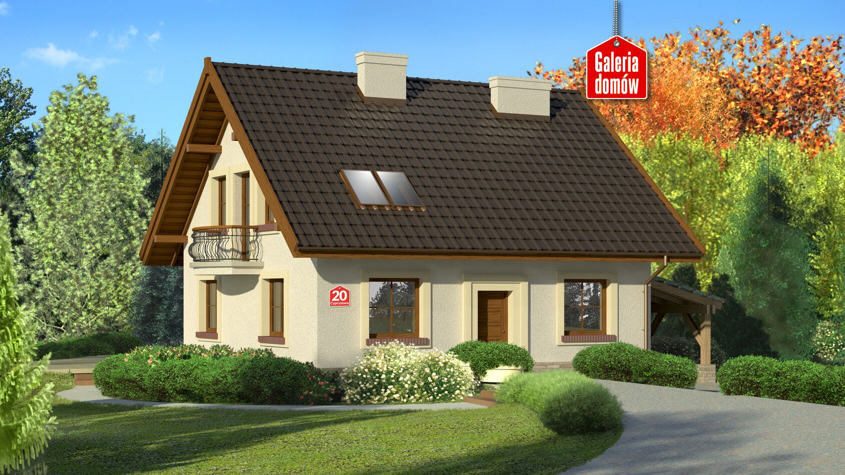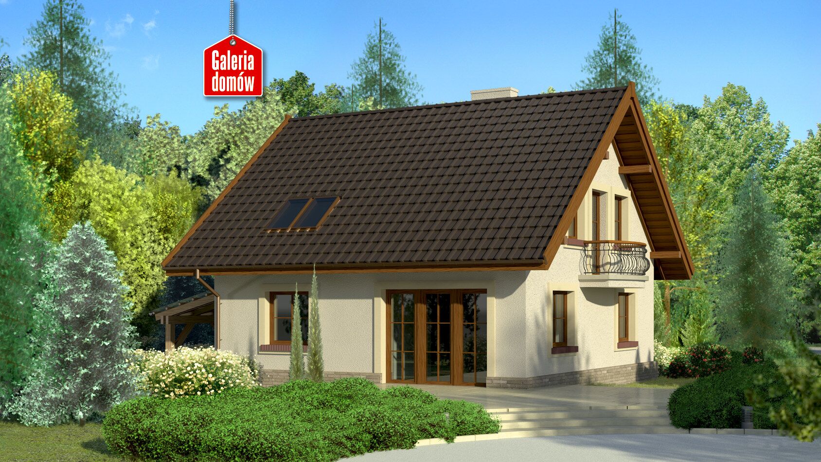Stylowy dom z poddaszem i wiatą garażową. Symetryczna zwarta bryła przykryta jest dachem dwuspadowym, co upraszcza realizację. Ciepła kolorystyka oraz subtelne dodatki na elewacjach podkreślają spokojny charakter domu i jego wygodę. Komfort użytkowania zapewnia przejrzysty podział na część dzienną i nocną. Dodatkowy pokój na parterze to doskonałe miejsce na urządzenie np. pracowni czy gabinetu. Dom przeznaczony jest dla cztero- lub pięcioosobowej rodziny.