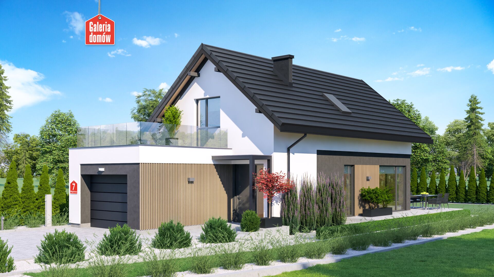 Dom w Migdałowej 7 to projekt domu jednorodzinnego o powierzchni użytkowej 92,57 m². Dom z poddaszem użytkowym i dachem dwuspadowym posiada garaż w bryle głównej budynku. Migdałowa 7 doskonale nadaje się do realizacji na wąskich działkach, o minimalnej szerokości 13,5 m. Układ funkcjonalny składa się z 4 pokoi, kuchni, 2 łazienek, garderoby oraz kotłowni. Na parterze znajduje się nasłoneczniona część dzienna z salonem o powierzchni 25 m² oraz otwartą kuchnią. Poddasze to przytulna część nocna. Znajdziemy tu 3 wygodne sypialnie z dostępem do francuskich balkonów oraz główną łazienkę. Sypialnia typu master bedroom wychodzi na przestronny taras. Projekt opracowany zgodnie z normami technicznymi WT 2021. Został zaprojektowany z myślą o warunkach, jakie powinny w przyszłości spełniać projekty domów zeroemisyjnych.