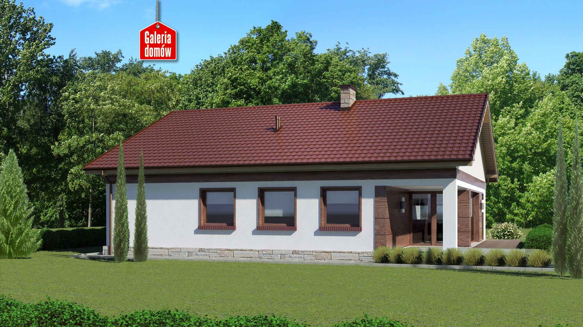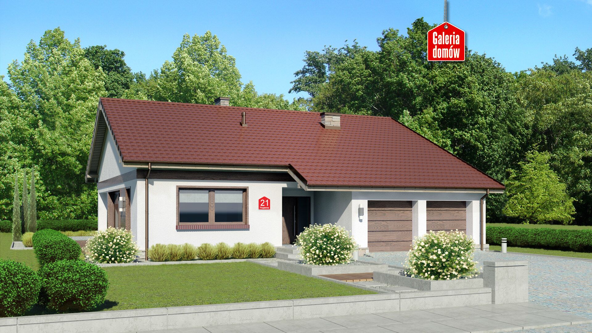 Dom przy Przyjemnej 21 to budynek mieszkalny z podwójnym garażem, zaprojektowany w technologii murowanej. Plan pomieszczeń zakłada 4 pokoje, 2 łazienki, kotłownię, garaż i otwartą część dzienną. Składa się na nią komfortowy i słoneczny salon, jadalnia oraz przestronna kuchnia. Klasyczny bungalow Dom przy Przyjemnej 21 posiada szerokie okno w kuchni, przesuwne drzwi oraz dodatkowe okno w części jadalnianej. Wnętrze staje się tym samym słoneczne i doskonałe do wspólnego spędzania czasu w gronie rodziny. W narożniku salonu zaprojektowano kominek. Uprzyjemni on swoim blaskiem jesienne i zimowe wieczory. Budynek posiada zadaszony taras, na którym zrelaksujemy się bez względu na pogodę. Przyjemna 21 należy do grupy domów energooszczędnych, lecz z zachowaniem tradycyjnej kolorystyki wykończenia zewnętrznego. Dachówka o ceglanym odcieniu, biała elewacja i stolarka w kolorze imitującym drewno to ponadczasowe połączenie klasycznego stylu i naturalnych dodatków. Jeśli cenimy wygodę parterowego domu i podoba nam się dom w tradycyjnej aranżacji, Dom przy Przyjemnej 21 będzie doskonałym wyborem. Zbudujemy go szybko i niewielkim kosztem, a to kolejna zaleta tej ciekawej propozycji.