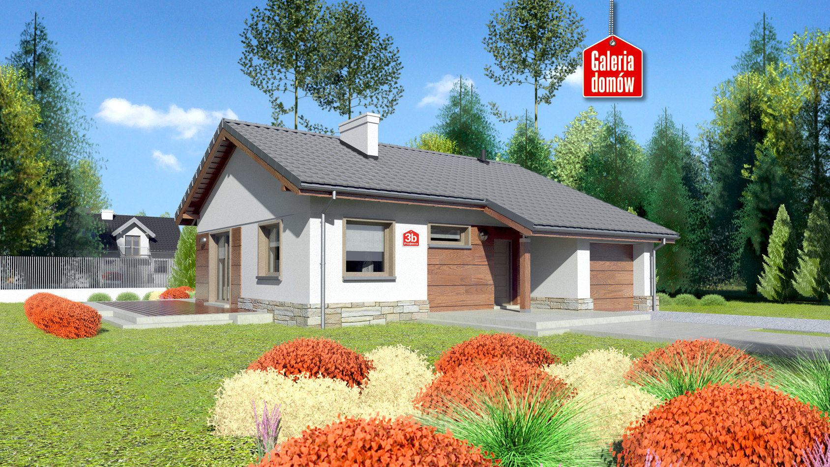 Dom przy Przyjemnej 3 bis to kompaktowy dom parterowy z garażem, zaprojektowany w nowoczesnej stylistyce. Jest on przygotowany dla osób poszukujących domu o sprawdzonych rozwiązaniach i ekonomicznego w codziennym użytkowaniu. Projektując wnętrze główny nacisk położono na funkcjonalność i potrzeby współczesnej rodziny. 30° kąt nachylenia połaci dachu skłania do rozważań nad możliwością wykorzystania poddasza.Projekt dostępny również w wersji z dachem o kącie nachylenia 25°.