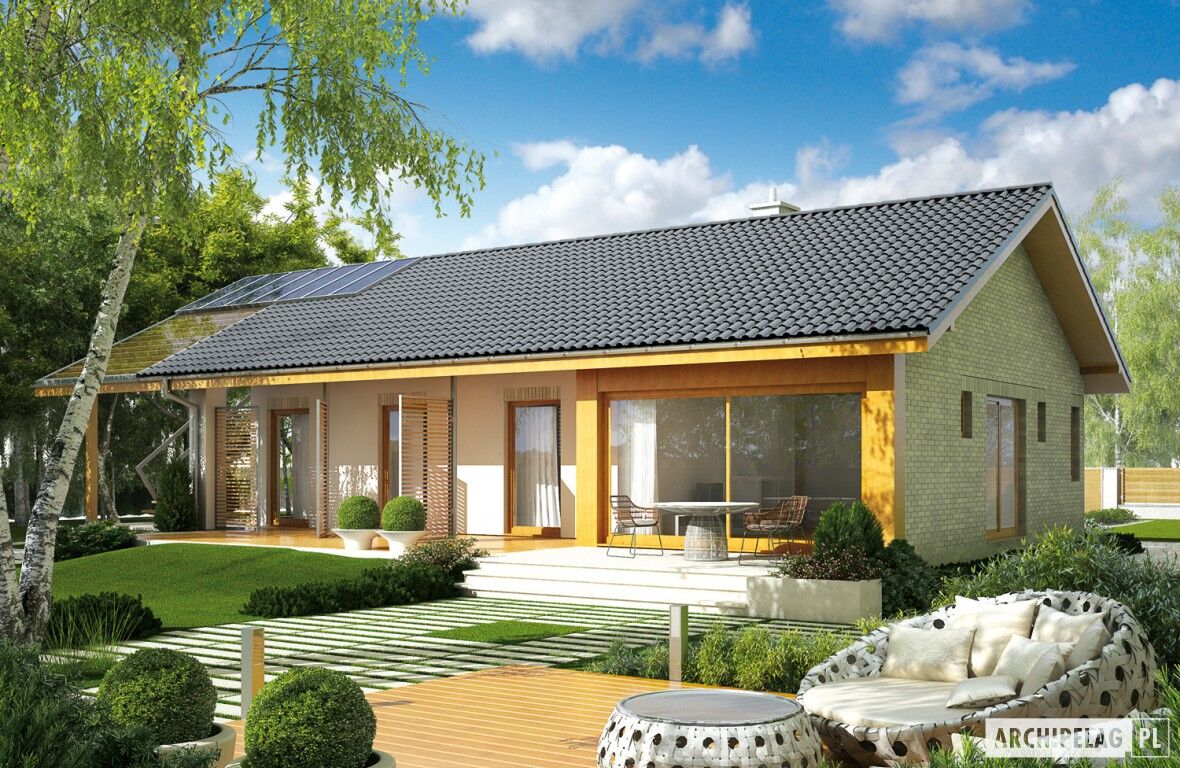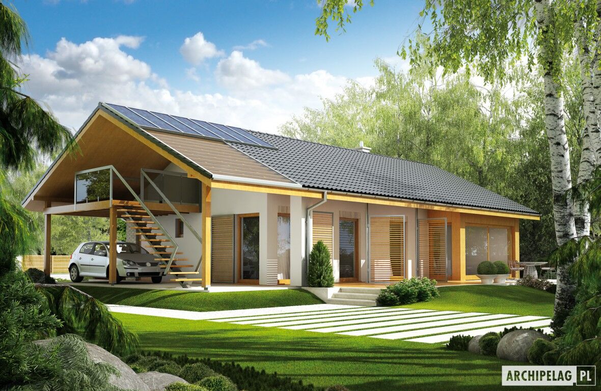 parterowy, niepodpiwniczony, z wiatą garażową