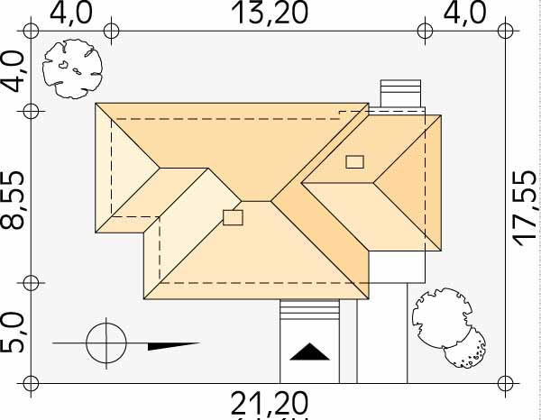 Jednorodzinny budynek mieszkalny, piętrowy, przeznaczony dla 4 – 5-osobowej rodziny. Nowoczesna, ciekawa bryła. Na parterze przewidziano cześć dzienną oraz część gospodarczą z garażem. Na piętrze cztery sypialnie oraz łazienka.