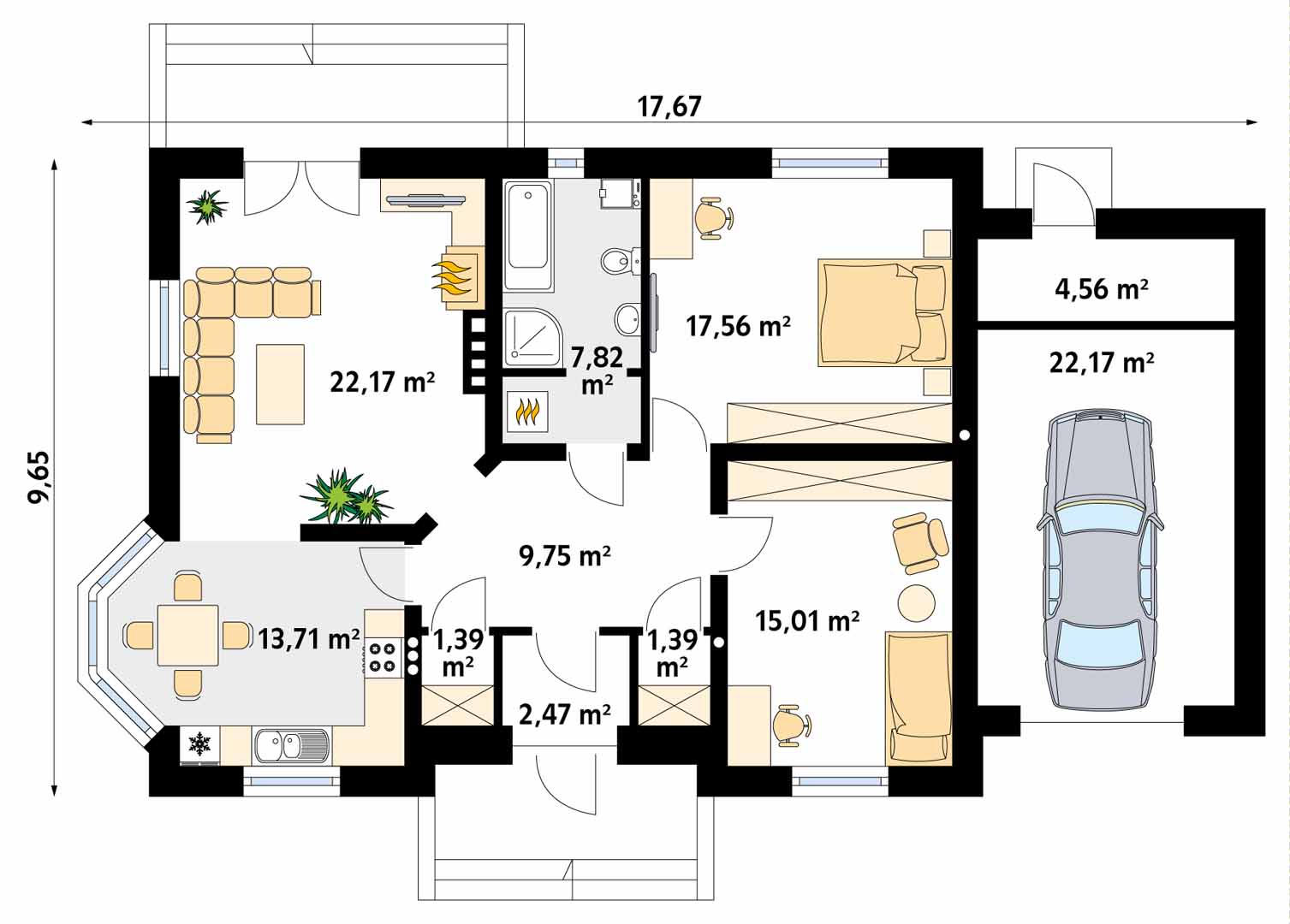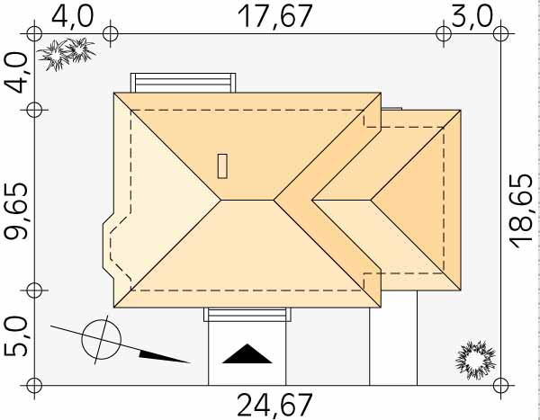Dom jednorodzinny, niepodpiwniczony, parterowy. Prosty, funkcjonalny dom zaspokajający potrzeby mieszkaniowe 3-osobowej rodziny. Dom o prostej, zwartej bryle, łatwy w budowie i ekonomiczny w utrzymaniu. GROT 3 – wersja projektu z rozbudowaną częścią garażową, kotłownią i pomieszczeniem gospodarczym.
