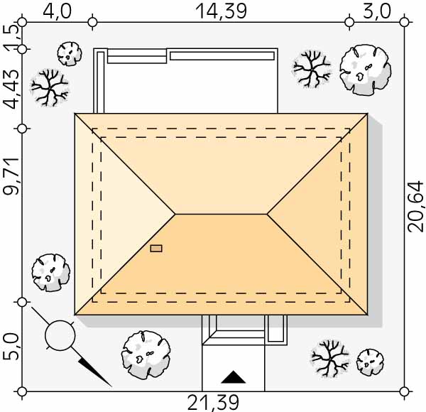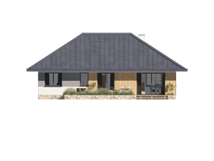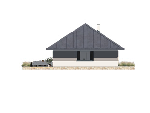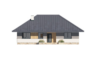 Gwiazdka 2 to projekt domu parterowego o powierzchni 106 m2. To propozycja projektowa dla 4-osobowej rodziny. Projekt posiada otwarta część dzienna z licznymi przeszkleniami. Zaprojektowano tu salon, dużą jadalnię i otwartą kuchnię. Mieszkańcy do dyspozycji mają trzy wygodne sypialnie oraz rodzinną łazienkę. Układ funkcjonalny domu dopełnia dodatkowy pokój przewidziany jako gabinet do pracy lub nauki oraz wiatrołap z miejscem na pojemna szafę. Projekt utrzymany został w nowoczesnym stylu.