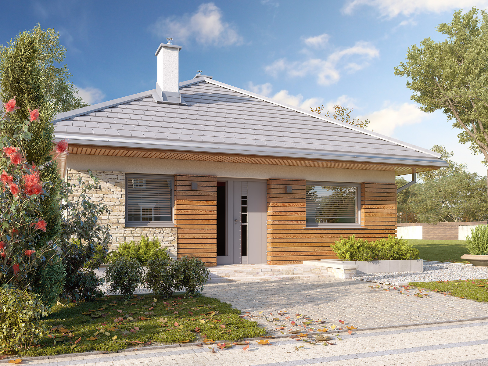 Imbir 6 jest projektem domu jednorodzinnego o niewielkiej powierzchni użytkowej. Atutem tego projektu jest usytuowanie kuchni z oknem od strony wjazdu. Kuchnia, jadalnia i salon jest umieszczona na jednej otwartej przestrzeni, która tworzy przestronne i ustawne wnętrze. Z salonem sąsiaduje, wyposażona w obszerną szafę, wygodna sypialnia. Obok sypialni zaprojektowano łazienkę. Z myślą o przechowywaniu rzeczy w korytarzu została umieszczona szafa. Wejście do kotłowni jest dostępne z wiatrołapu. Ze względu na zaprojektowane ogrzewanie gazowe, w kotłowni została umieszczona pralka.