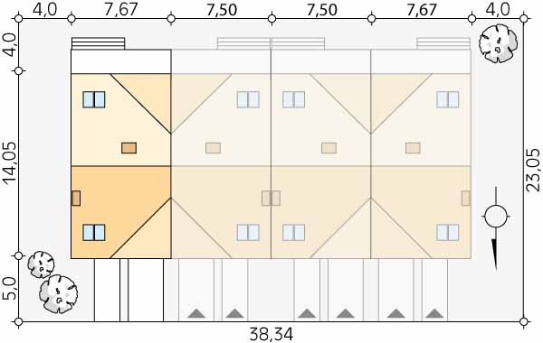 Jarząb to projekt domu w zabudowie szeregowej. Tradycyjna bryła pokryta wielospadowym dachem nawiązuje do tradycji architektury polskiej. Rozkład pomieszczeń jest niezwykle funkcjonalny i zapewnia komfortowe warunki do życia 5-osobowej rodzinie. Obszerne tarasy, garaż oraz duże przeszklenia w części dziennej domu to dodatkowe atuty projektu. Cena dotyczy jednego segmentu. O inne konfiguracje zapytaj telefonicznie.