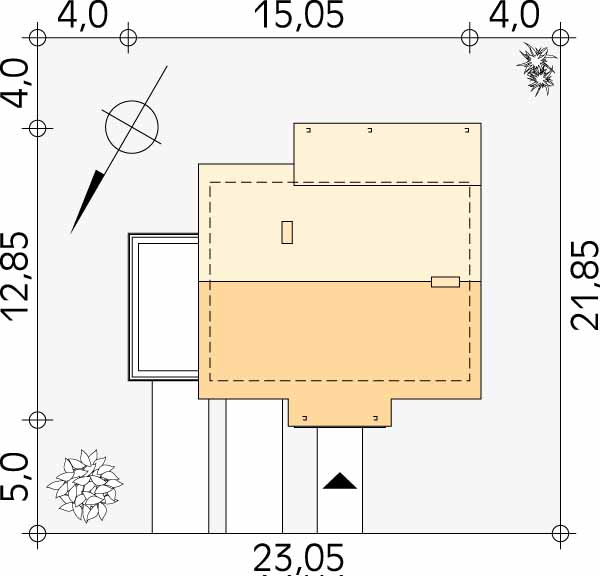 Prosty, funkcjonalny dom jednorodzinny z użytkowym poddaszem, garażem, przeznaczony dla 4 – 5-osobowej rodziny. Dom posiada duży zadaszony taras dostępny z salonu. Niewielkie rozmiary domu pozwalają na usytuowanie go na małej działce.