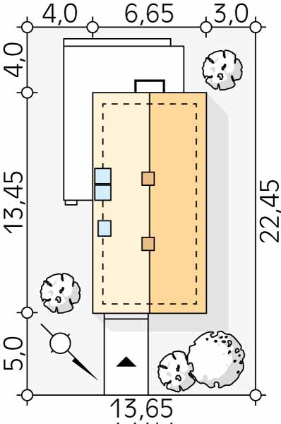 Koliber 6 jest domem dopasowany do potrzeb 4-osobowej rodziny. Budynek przyciąga uwagę bryłą o minimalistycznym detalu, panoramicznym przeszkleniem oraz oknami kolankowymi. Wymiary budynku pozwalają na budowę na wąskiej działce. Na parterze zaprojektowano otwartą strefę dzienną, na którą się składa pokój dzienny z jadalnią i kuchnią. Duże przeszklenia rozjaśniają wnętrze i zacierają granicę między wnętrzem a ogrodem. Na poddaszu znajdują się 3 wygodne sypialnie i łazienka. Układ okien i pomieszczeń umożliwia ustawienie budynku wejściem w stronę południa.