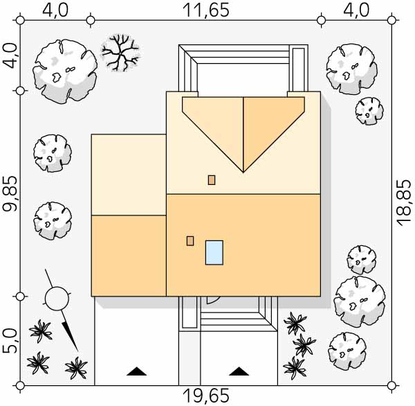 Kote 2 to projekt domu z użytkowym poddaszem i jednostanowiskowym garażem. Na powierzchni ok. 110 m2 powierzchni użytkowej zaprojektowano wszystko czego może potrzebować współczesna rodzina. Na parterze pojawiła się otwarta część dzienna. To przestronny salon i kuchnia ze spiżarnią. Program funkcjonalny parteru dopełnia niewielkie WC oraz wiatrołap z miejscem na pojemną szafę. Na poddaszu zaprojektowano trzy funkcjonalne sypialnie. Każda z sypialni posiada miejsce na wygodne łóżko. Sypialnia rodziców posiada prywatną garderobę.
