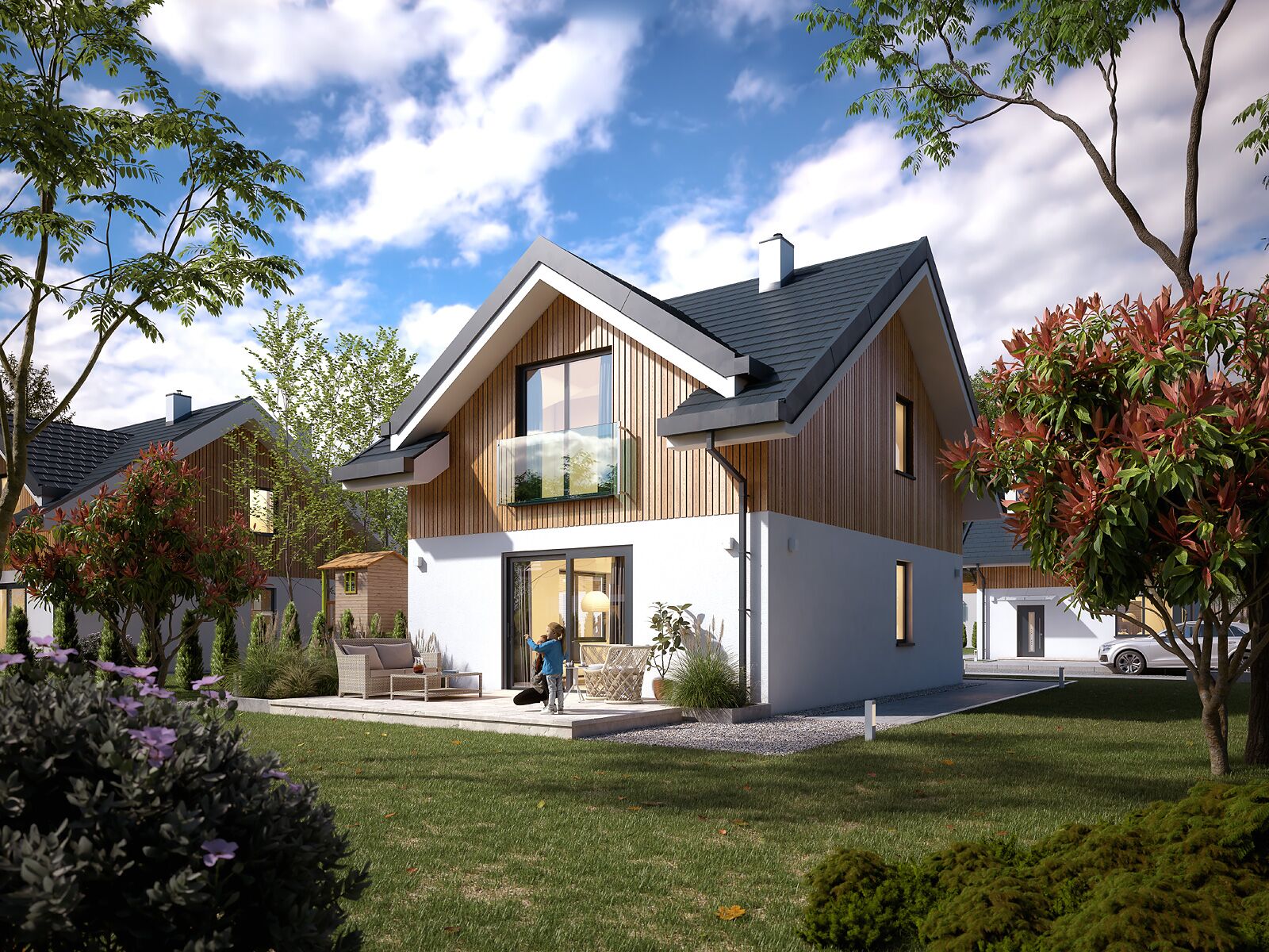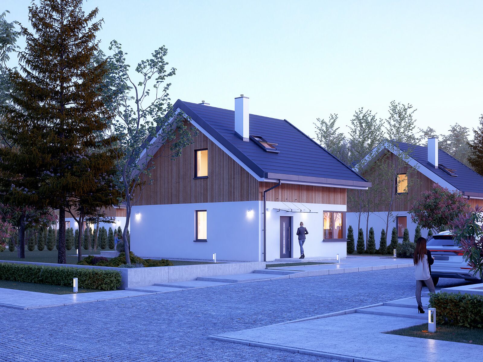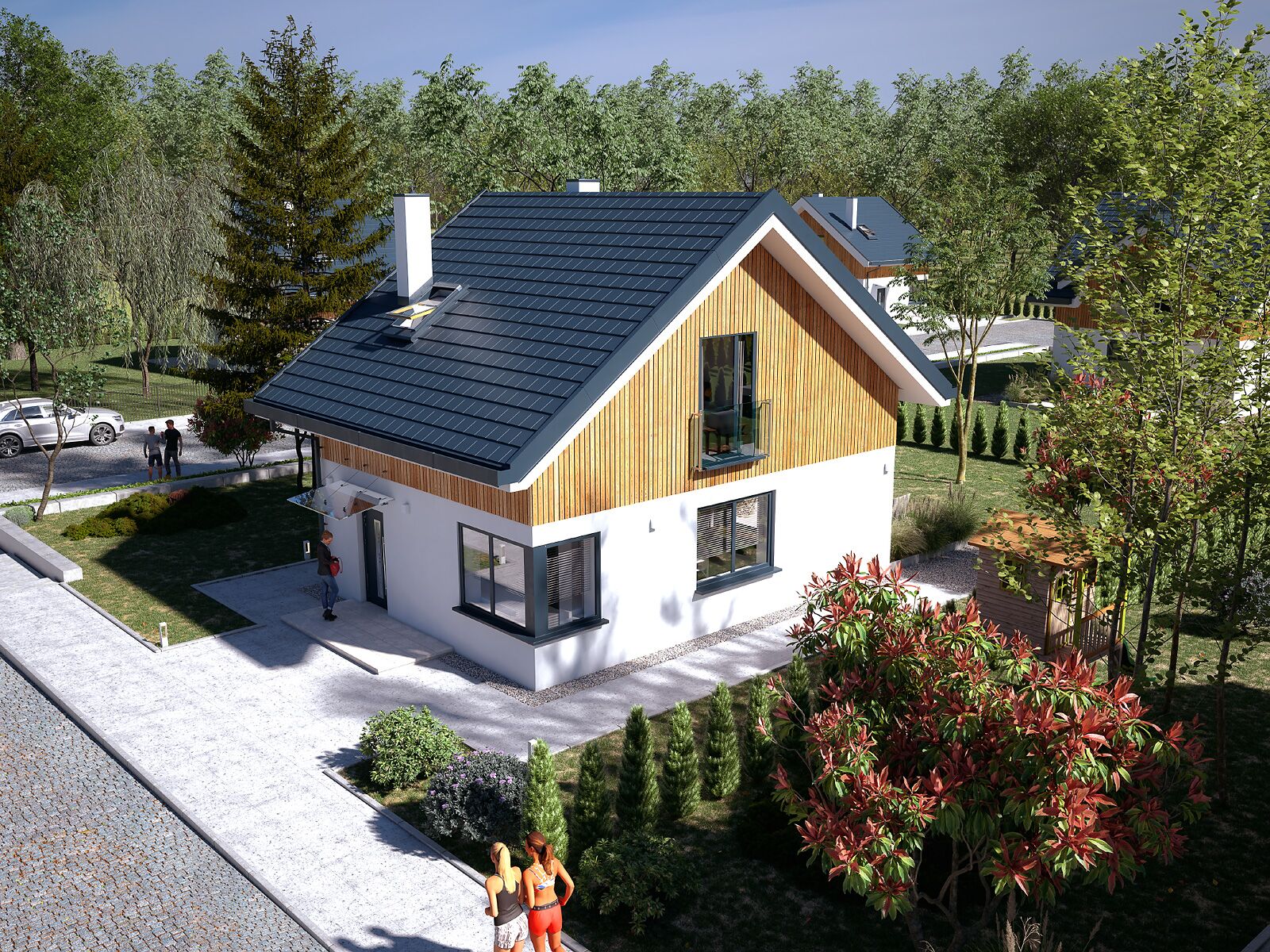 Kote to projekt domu z użytkowym poddaszem o powierzchni użytkowej 94 m2. Projekt stworzono z myślą o 3-osobowej rodzinie. Na parterze zaprojektowano otwartą część dzienną z salonem i kuchnią. Przy kuchni pojawiła się funkcjonalna spiżarnia. Poddasze to prywatna przestrzeń mieszkańców. Zaprojektowano tu dwie wygodne sypialnie i ogólnodostępna łazienkę. Projekt utrzymany został nowoczesnym stylu. Projekt posiada powierzchnię zabudowy nie przekraczającą 70 m2, dlatego można go wybudować na zgłoszenie.