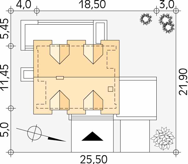 Wymiary budynku 18.5 m × 11.45 m