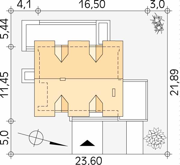 Dom mieszkalny przeznaczony dla 3 – 4-osobowej rodziny. Nowoczesne elementy domu podkreślają jego oryginalność i nadają tej prostej bryle niepowtarzalny charakter. Istnieje możliwość wybudowania domu bez garażu lub powiększenie garażu do dwóch stanowisk.