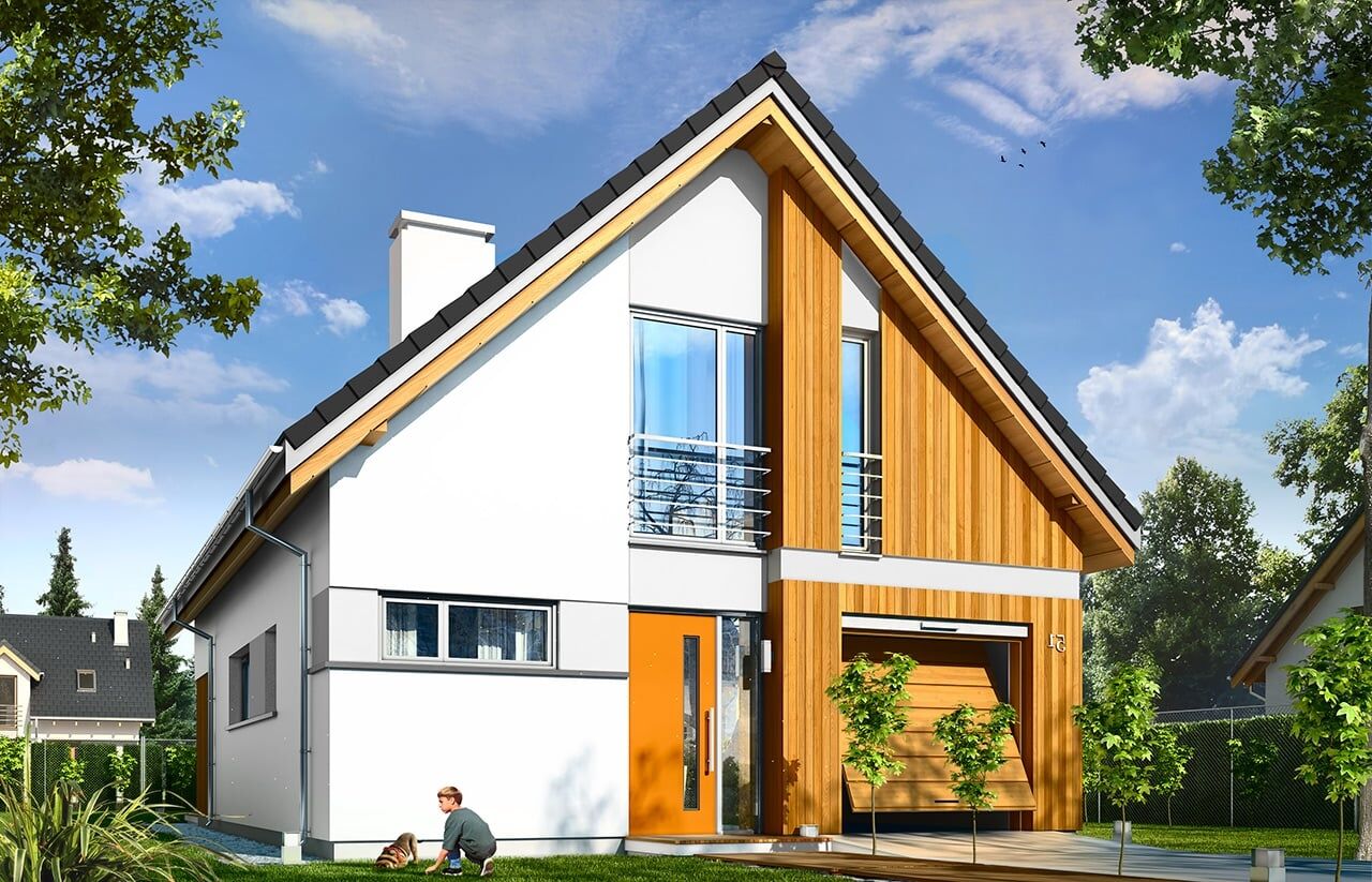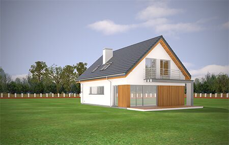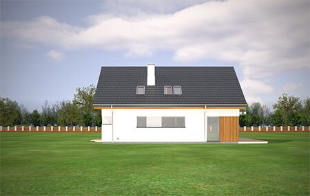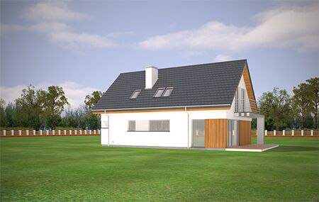 Projekt Lena to dom parterowy, z użytkowym poddaszem, zaprojektowany na prostokątnym rzucie, przykryty dwuspadowym symetrycznym dachem. Kształt bryły, forma budynku, zastosowane materiały, oraz detale projektu Lena podkreślają nowoczesność, energooszczędność i funkcjonalność budynku. Projekt domu Lena ma prostą konstrukcję, dom jest łatwy w budowie, co pozytywnie wpłynie na szybkość budowy i koszt realizacji.