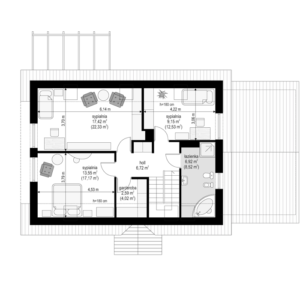 Wymiary budynku 15,72 m × 8,49 m