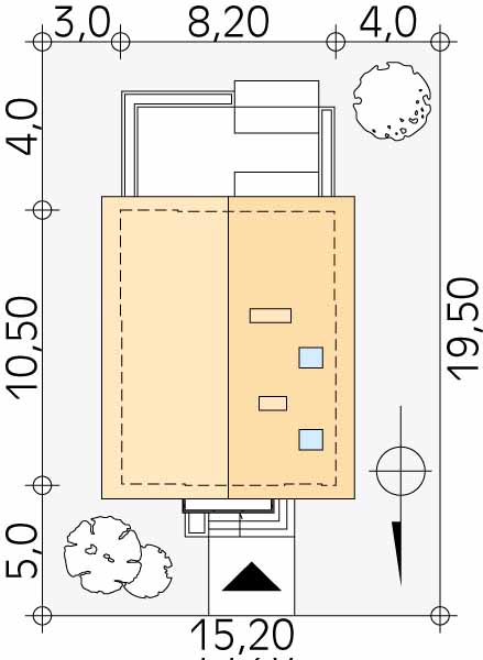 Niewielki dom parterowy z użytkowym poddaszem, przeznaczony dla 4-osobowej rodziny. Na parterze obok części dziennej i gospodarczej zaprojektowano dodatkowy pokój. Na poddaszu przewidziano trzy sypialnie, jedną z garderobą, oraz łazienkę. W projekcie przewidziano duży, przestronny taras. Całość została ujęta w prostą, klasyczną bryłę przykrytą dwuspadowym dachem. Projekt idealny na wąską działkę.