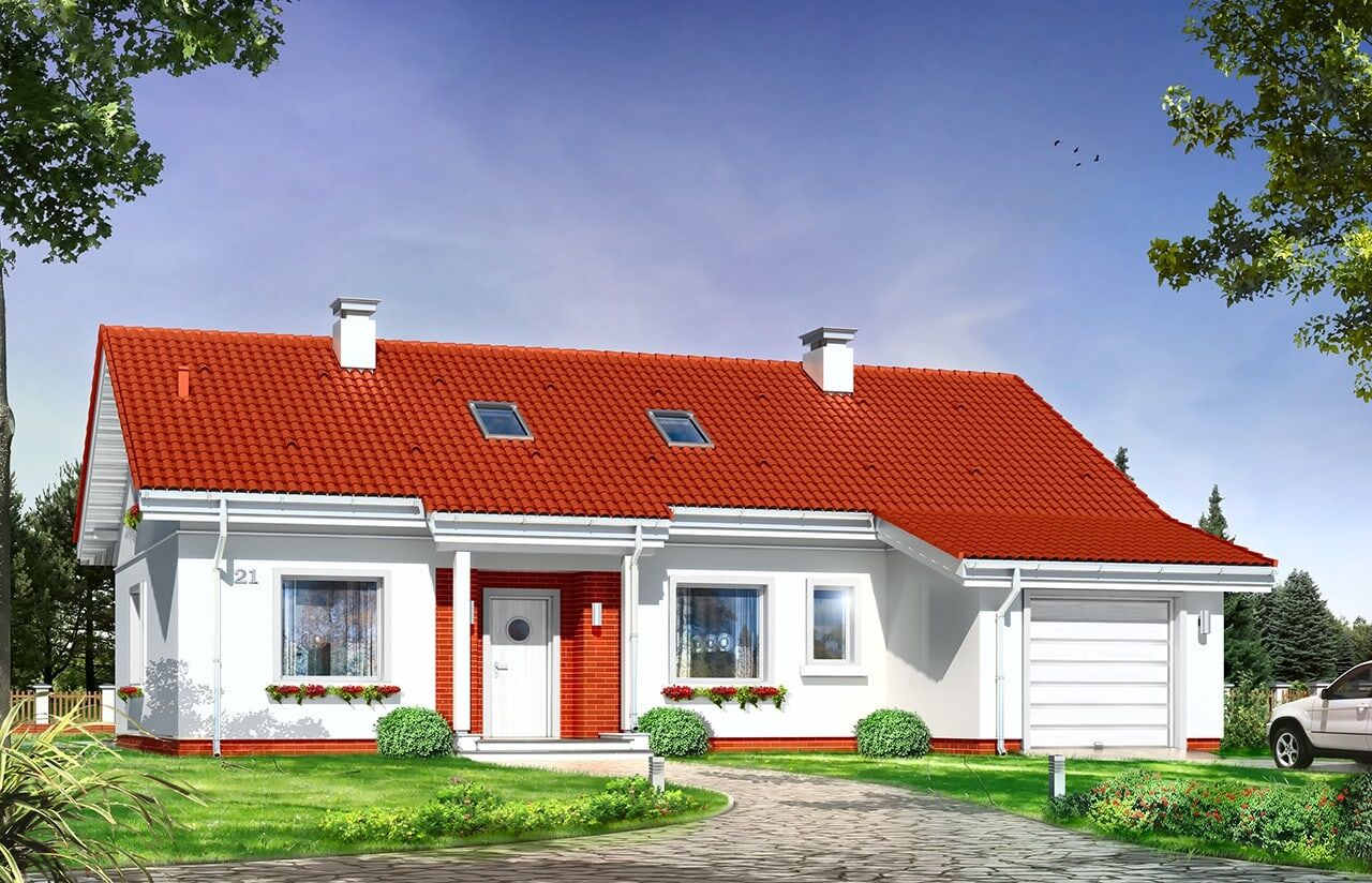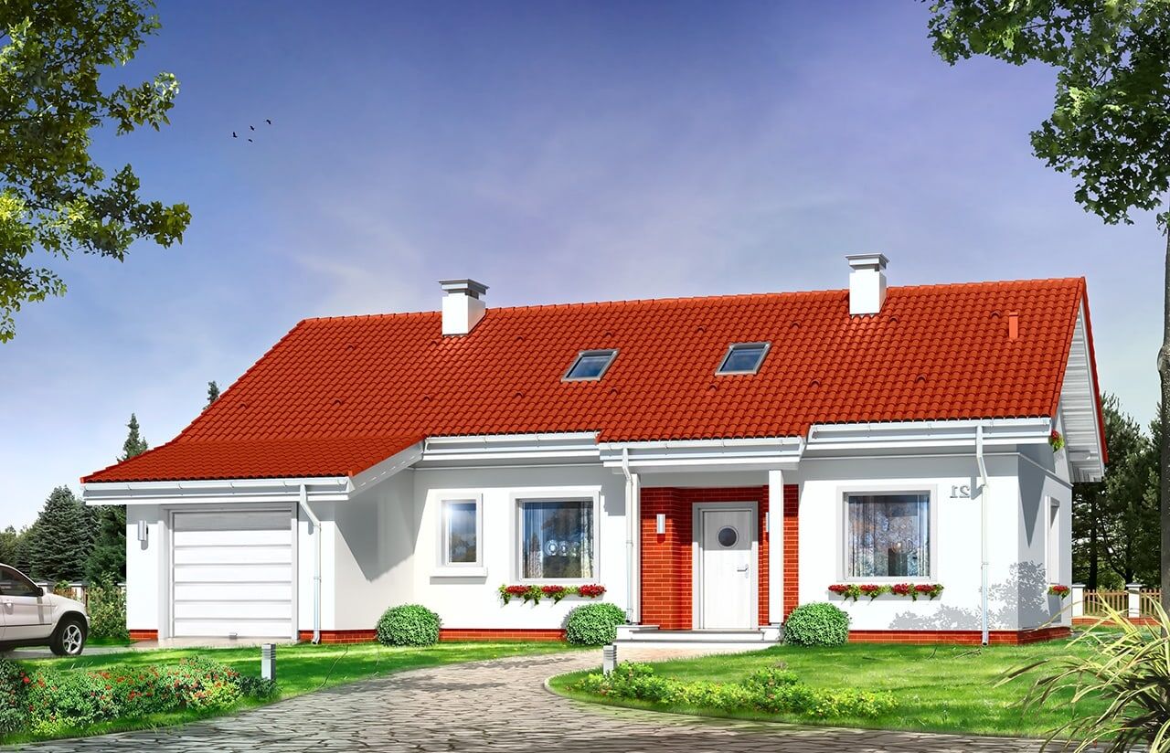 Gotowy projekt domku jednorodzinnego Luna z garażem to doskonała propozycja dla osób ceniących sobie wygodę mieszkania na parterze, chcących mieć „zapas” miejsca do wykorzystania w postaci poddasza, chcących wybudować tani, ekonomiczny i energooszczędny dom.