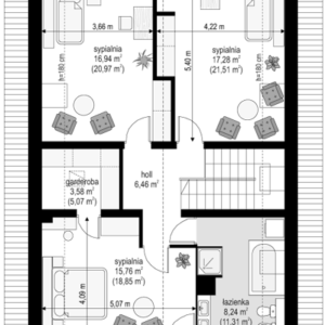Min. wymiary działki 16,86 m x 21,84 m