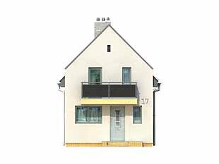 Mały, funkcjonalny dom jednorodzinny dla 2 – 3-osobowej rodziny. Prosta bryła budynku o miejskim charakterze. Idealny na bardzo wąską działkę