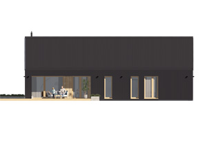 Projekt domu Paproć to parterowy projekt domu zaprojektowany w stylu nowoczesnej stodoły. Projekt został zaprojektowany na planie prostokąta i przykryty dwuspadowym dachem bez okapów. Na uwagę zasługuje również oryginalne wykończenie elewacji, którą podobnie jak dach, pokryto blachą falistą. Układ wnętrz został podzielony na dwie części: dzienną i nocną. W części dziennej zaprojektowano przestronny salon, który spójnie przechodzi w reprezentacyjną jadalnię oraz kuchnię. W kuchni znajduje się półwysep, który pełni również funkcję barku śniadaniowego. W części wypoczynkowej wyróżniamy wysokie, panoramiczne przeszklenia, które otwierają wnętrze na otoczenie i prowadzą na zadaszony taras. W części nocnej domu znajdują się dwie komfortowe sypialnie, rodzinna łazienka, toaleta oraz pralnia z miejscem na piec gazowy lub pompę ciepła.