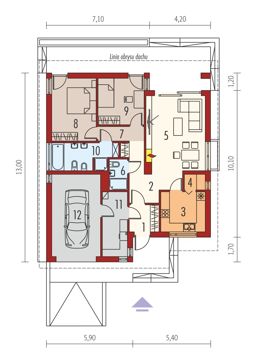 Wymiary budynku 11.30 m × 13.00 m