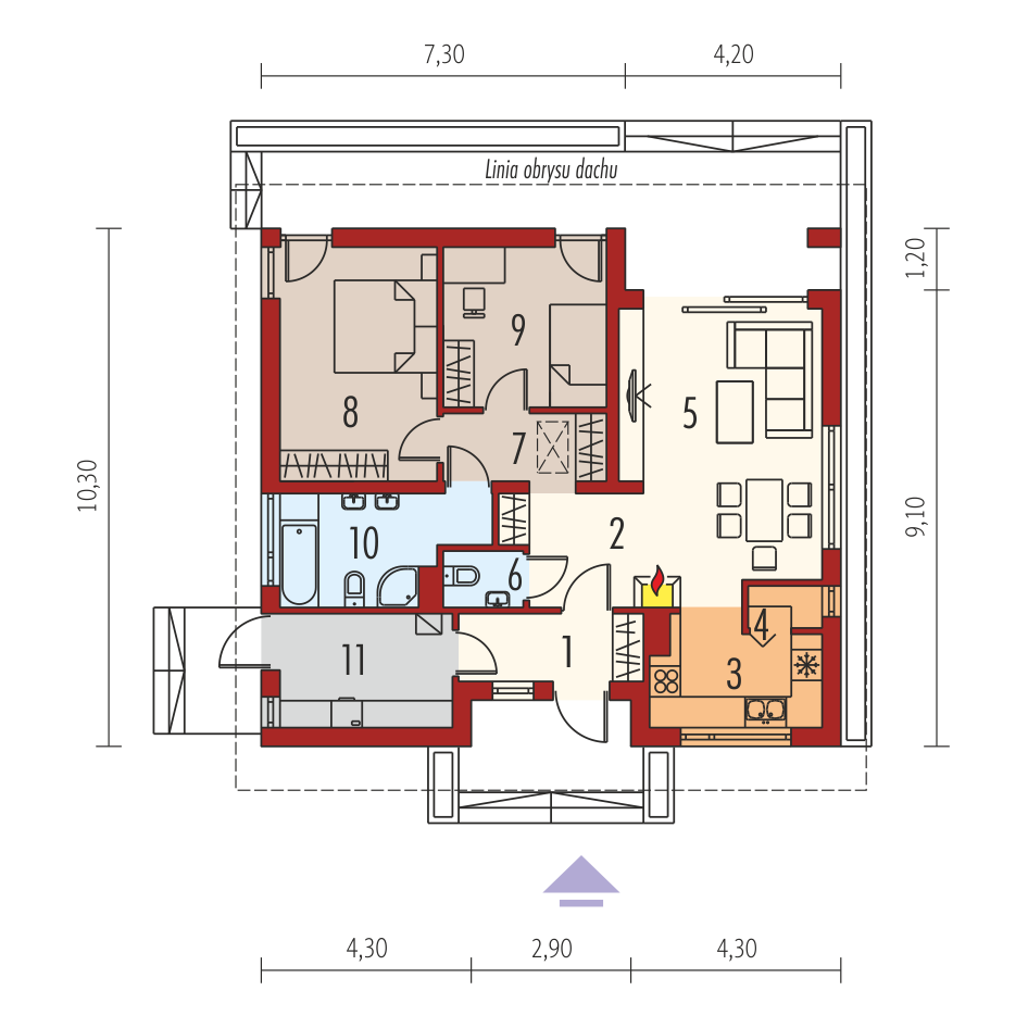 Wymiary budynku 11.50 m × 10.30 m
