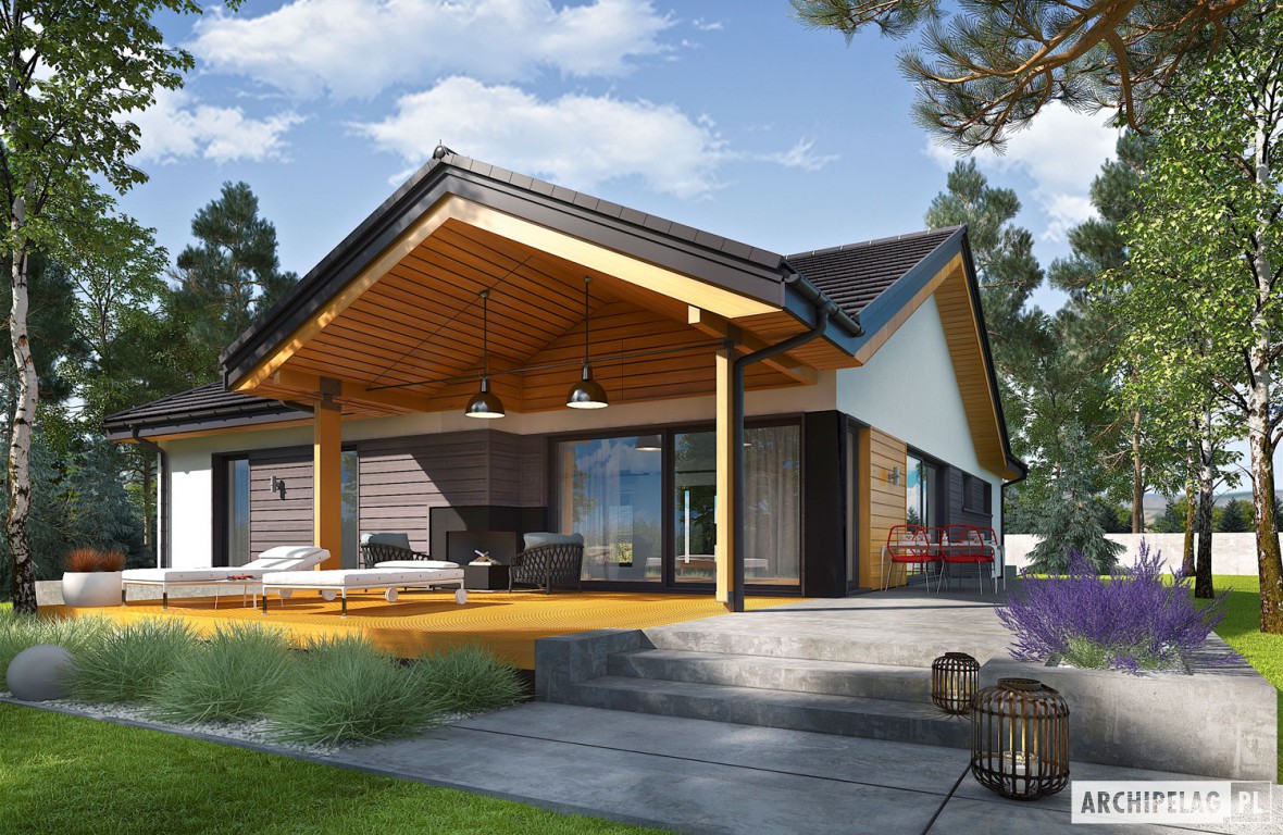 – Simon IV – dom parterowy, 3 sypialnie, dach o kącie nachylenia