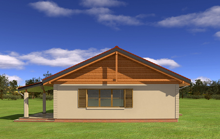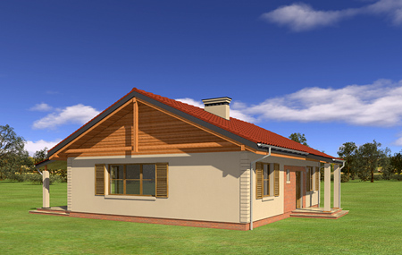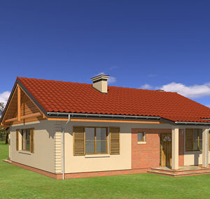 Projekt domu Szpak to prosty w budowie parterowy dom jednorodzinny, o spokojnej, skromnej architekturze. Budynek przeznaczony dla czteroosobowej rodziny. Prostokątna bryła domu przekryta dwuspadowym łagodnym dachem, z dodatkowymi podcieniami frontowego ganku i ogrodowego zadaszenia tarasu, kryje funkcjonalne, przemyślane wnętrze. Proporcjonalnie rozplanowane okna, ozdoby elewacji, dodatki – jak okiennice, czy kolumienki akcentujące wejście, nadają elewacjom atrakcyjnego wyglądu. Projekt domu Szpak, wewnątrz podzielono na część dzienną, z obszernym salonem z kominkiem, częściowo otwartą ustawną kuchnią i wygodnym holem, oraz na pokoje sypialne, będące trochę odseparowane od pokoju dziennego. Salon w projekcie Szpak ma, przez szerokie przeszklone drzwi bardzo ładne połączenie z tarasem ogrodowym. Zadaszenie tarasu tworzy naturalne przedłużenie salonu. Każda z trzech sypialni ma zaprojektowane wnęki szafowe. Łazienka i dodatkowe wc z natryskiem ułatwią codzienne użytkowanie domu. Obok dużego przedsionka zaprojektowano kotłownię, przystosowaną do ogrzewania paliwem stałym. Dom Szpak został zaprojektowany w ponadczasowej estetyce, z pominięciem chwilowych mód, z zastosowaniem tradycyjnych, trwałych materiałów. To po prostu normalny dom. Pracownia posiada wersję odbicia lustrzanego projektu oraz projekt domu Bursztyn czyli wersja z garażem. Zapraszamy!