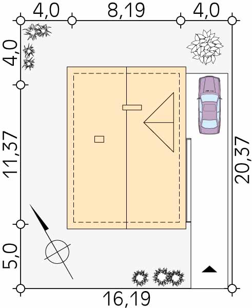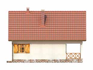 Mały, podpiwniczony dom jednorodzinny z użytkowym poddaszem. Klarowny, prosty układ funkcjonalny. Zadaszony, duży taras.