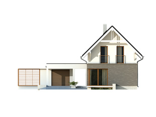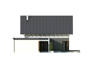 Niewielki dom mieszkalny przeznaczony dla 4-osobowej rodziny. Na stosunkowo niewielkiej powierzchni zaprojektowano bogaty program funkcjonalny. Na parterze znajduje się przestronny salon z aneksem kuchennym oraz duże wielofunkcyjne pomieszczenie gospodarcze, które z powodzeniem może zostać zaadaptowane na kotłownię na paliwo stałe. Na poddaszu znajduje się funkcjonalna łazienka oraz trzy sypialnie. Sypialnia rodziców dodatkowo posiada oddzielną garderobę.