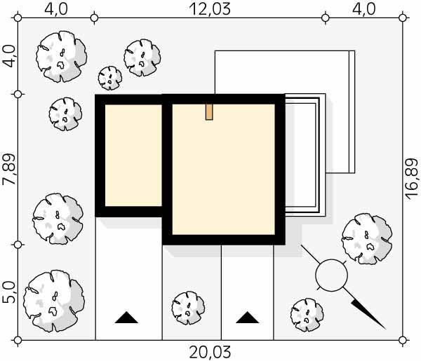 Trawertyn 2 to nowoczesny projekt domu o dwóch kondygnacjach, który wyróżnia się nowoczesną bryłą z płaskim dachem i efektownie wykończoną elewacją. Jasny tynk został połączony z brązową szalówką oraz szarą stolarką. Strefy użytkowe w projekcie zostały podzielone miedzy dwie kondygnacje. Na parterze znajduje się otwarta strefa dzienna z salonem, kuchnią oraz jadalnią. Salon został zaprojektowany od frontu, dzięki czemu projekt idealnie wpasuje się na działkę z wjazdem od południa. Na parterze znajduje się również toaleta oraz pomieszczenie gospodarcze prowadzące do jednostanowiskowego garażu. Strefa nocna została zaprojektowano na piętrze i składa się z trzech sypialni oraz ogólnodostępnej łazienki. Do dyspozycji mieszkańców na piętrze znajduje się taras nad częścią dzienną oraz balkon w formie loggi od strony ogrodowej. Na parterze strefę wypoczynkową na świeżym powietrzu tworzy taras biegnący wzdłuż dwóch ścian budynku.